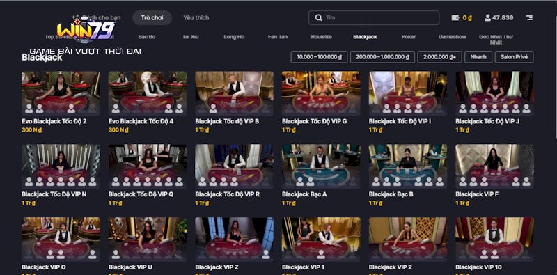 Giới thiệu trò chơi Blackjack tại Win79
