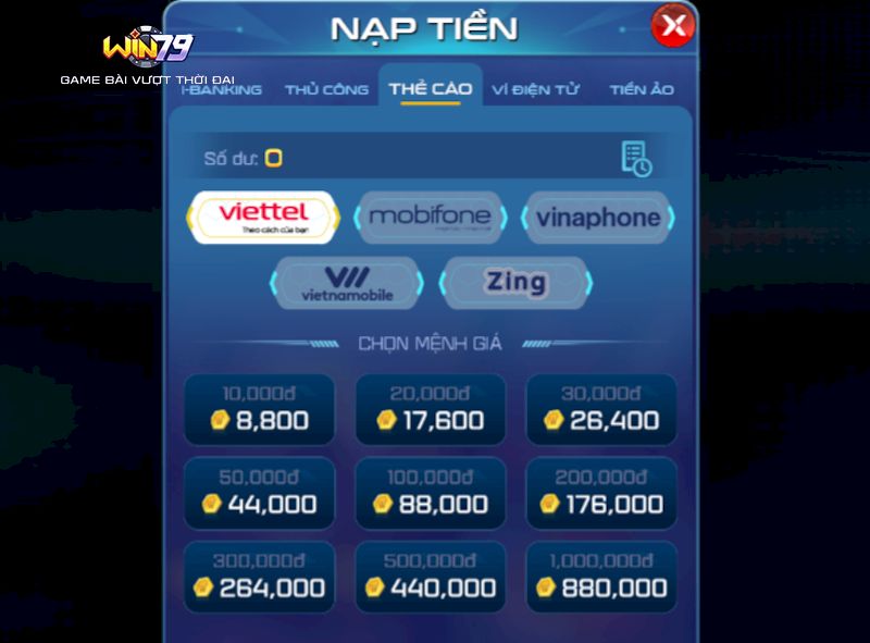 Chọn nhà mạng để nhanh chóng nạp tiền Win79 qua thẻ cào